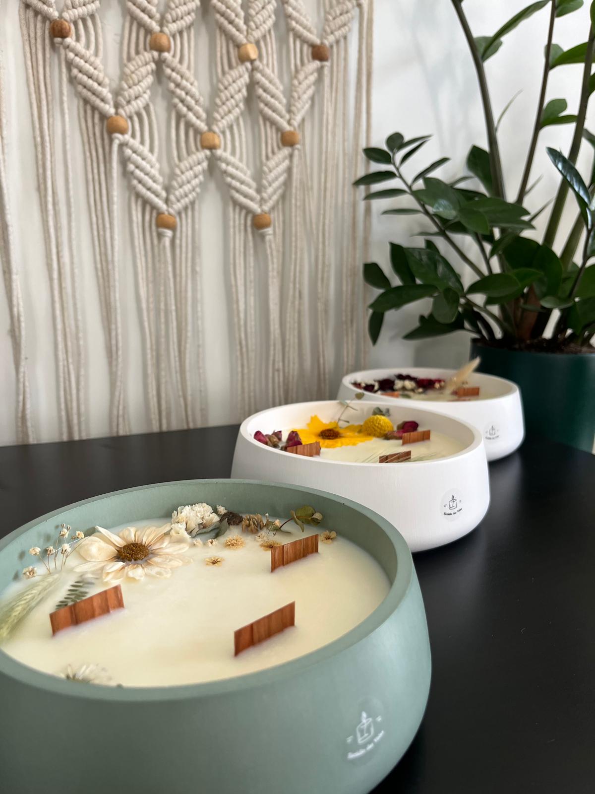 Nuestras velas están elaboradas con cera de soja 100% natural, mechas de algodón o madera y fragancias premium libres de sustancias tóxicas.