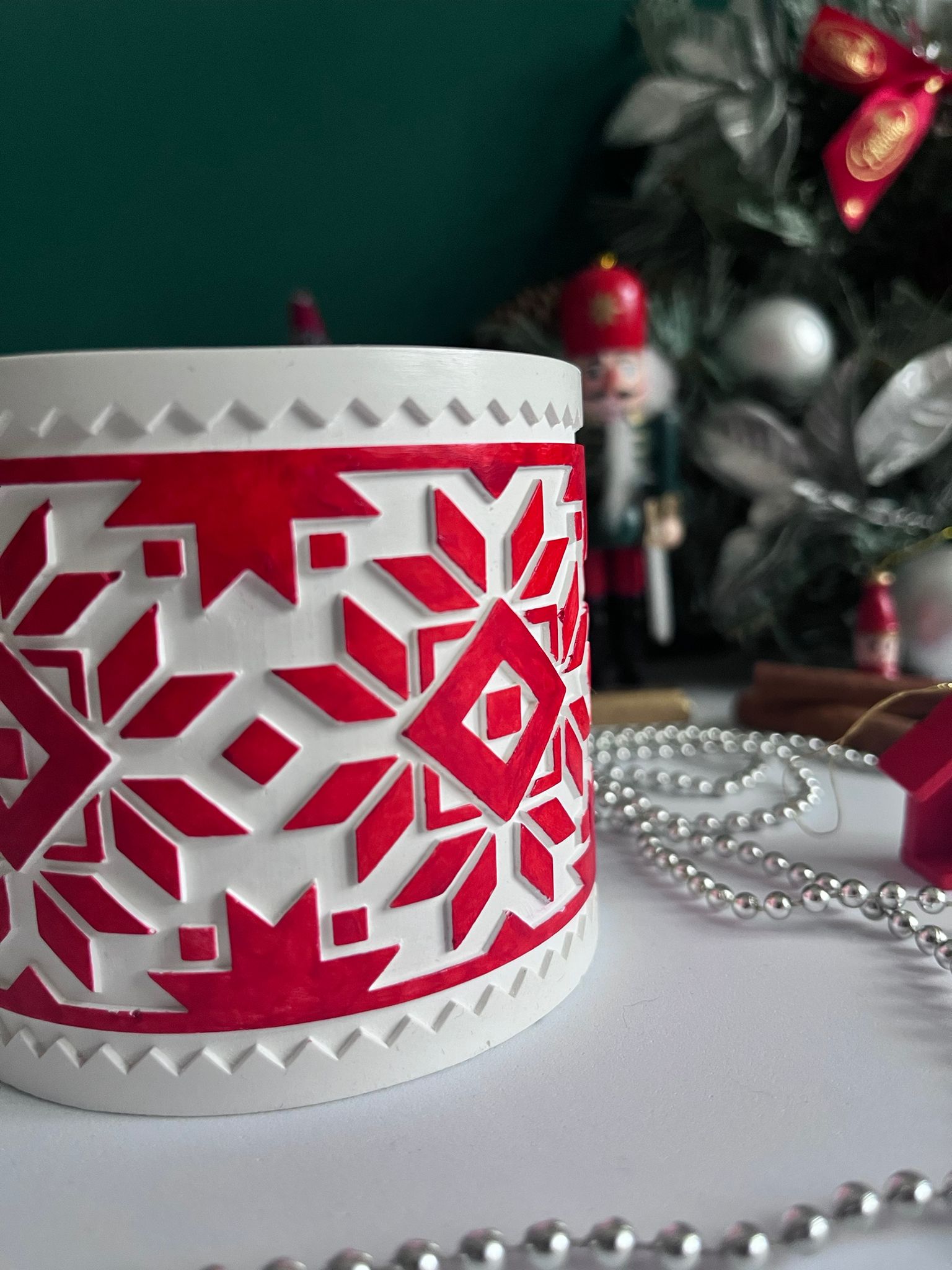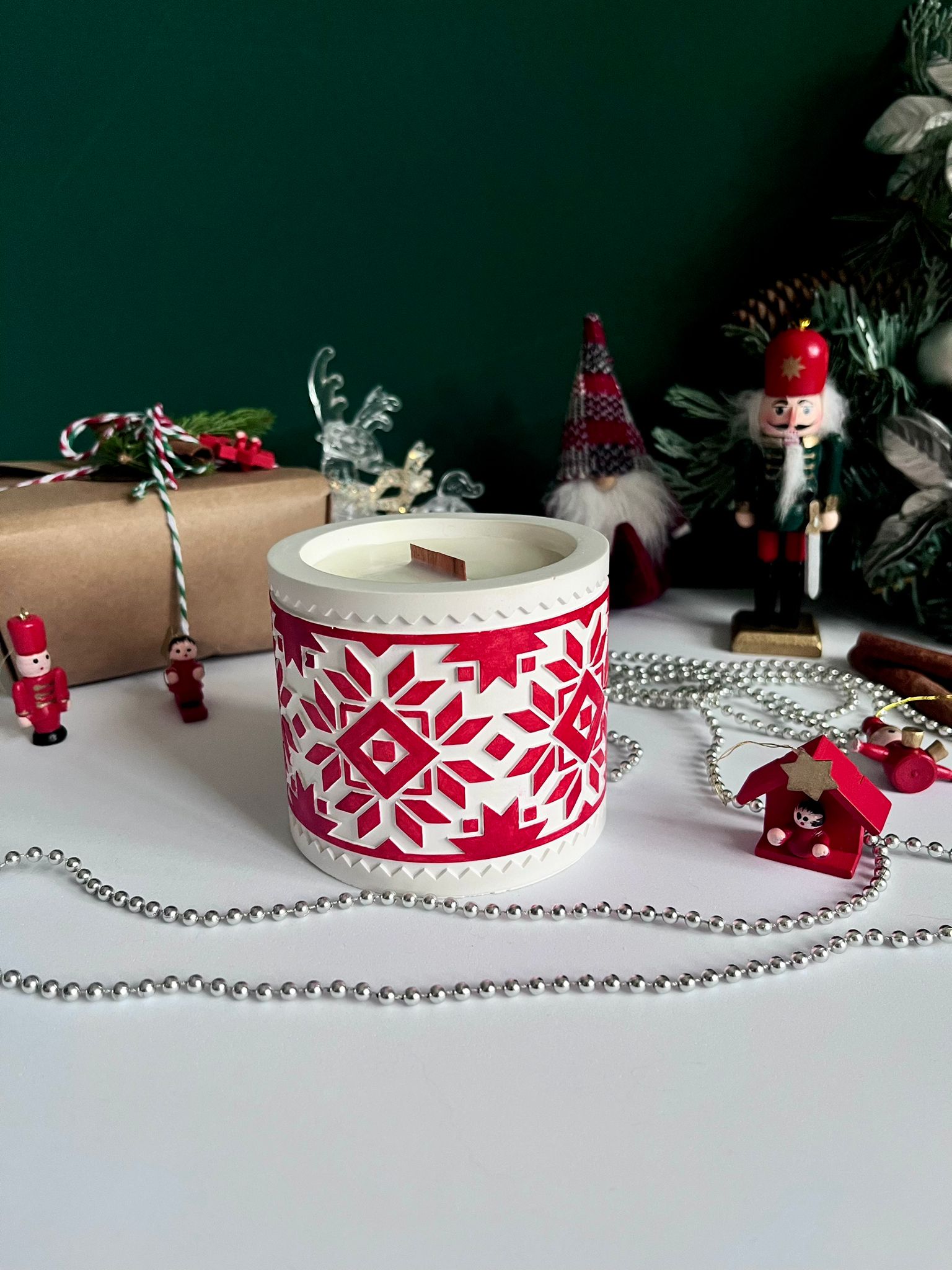 Elaborada con cera de soja 100% ecológica, pura y duradera, esta vela combina estética y tradición con un elegante diseño en rojo y blanco, inspirado en los recuerdos y la ternura de la Navidad.
