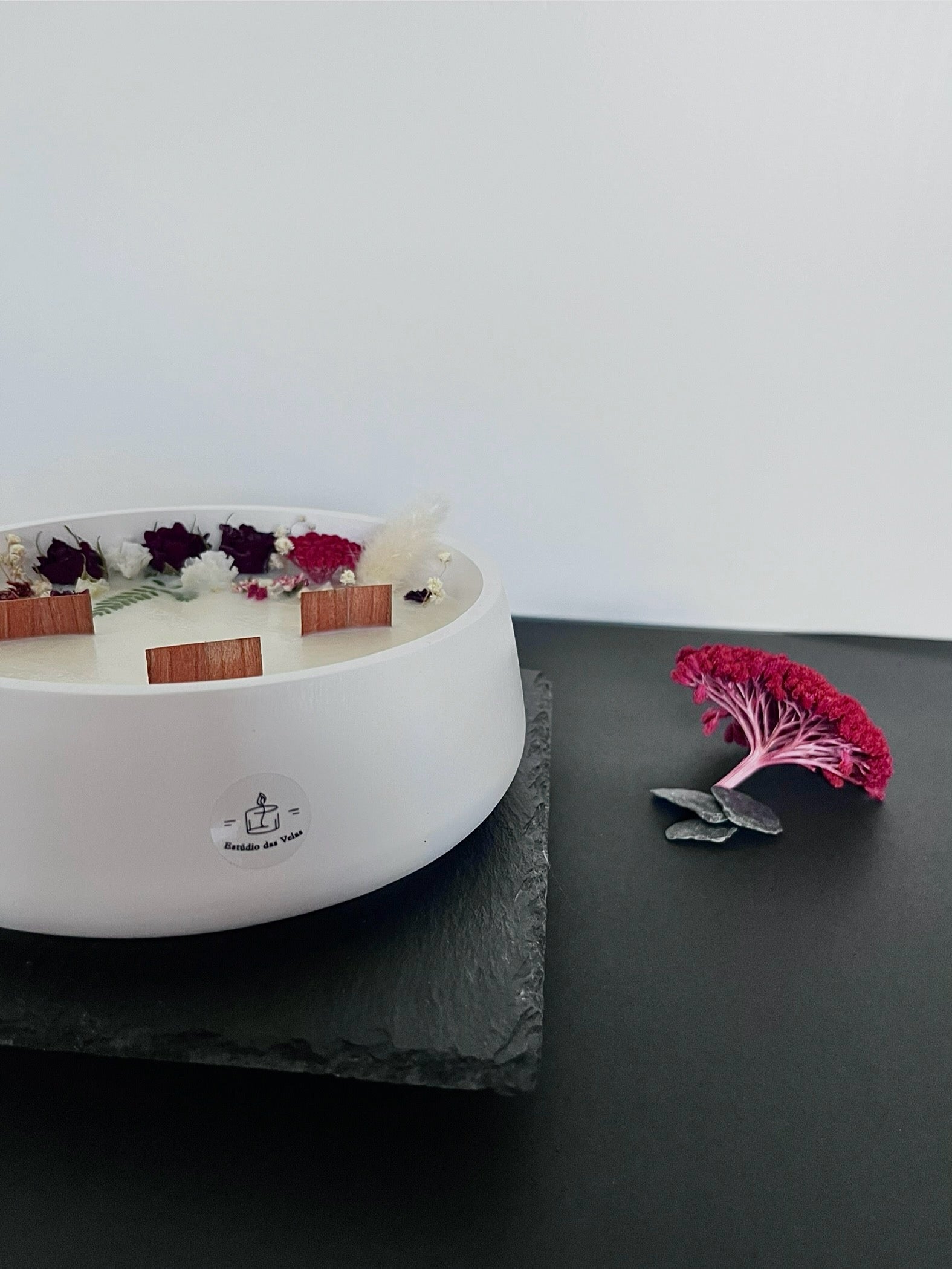 Nosso cachepô exclusivo artesanal é feito com atenção aos mínimos detalhes, transformando cada vela em uma verdadeira peça de arte e um elemento de decoração refinado.