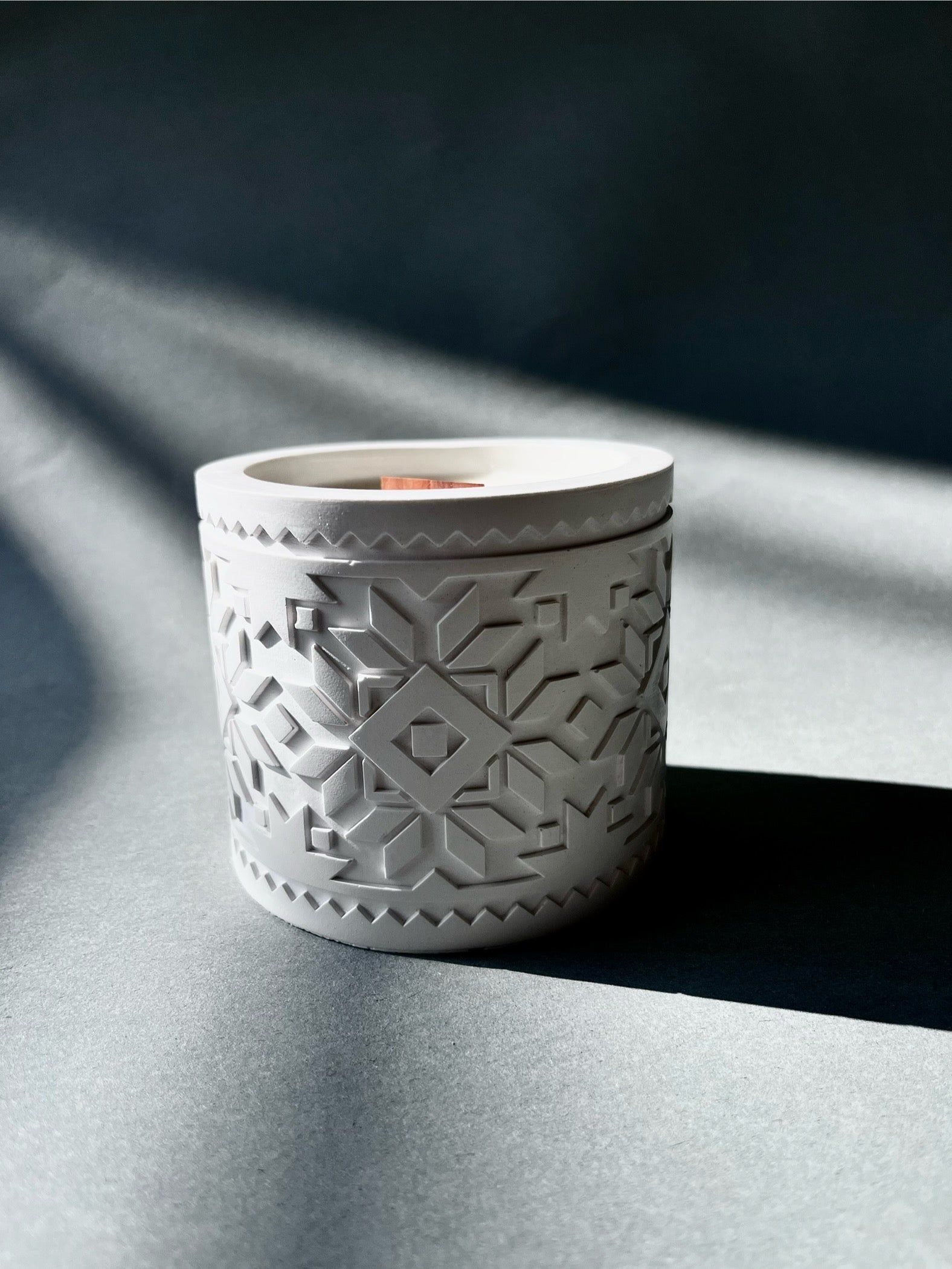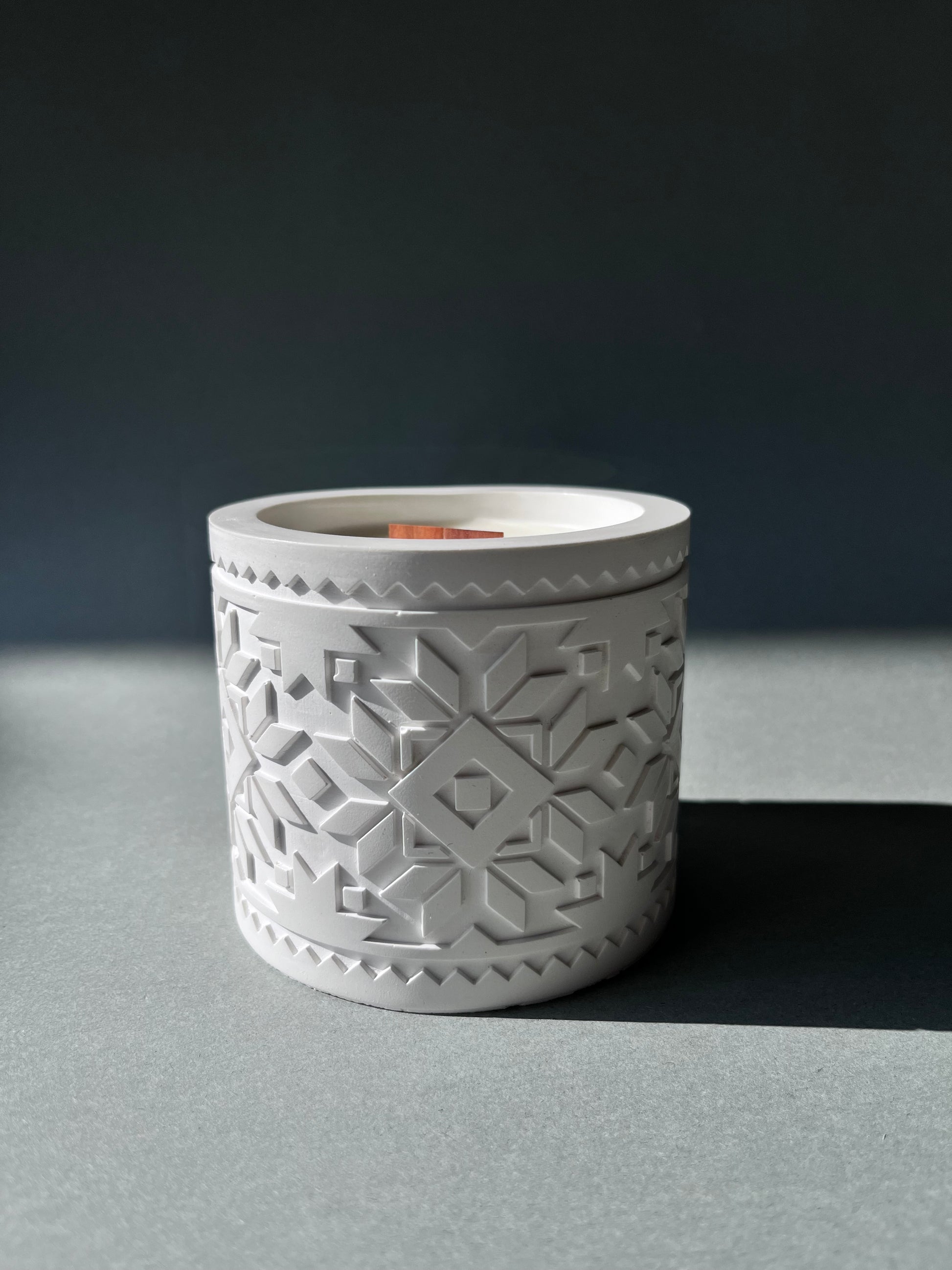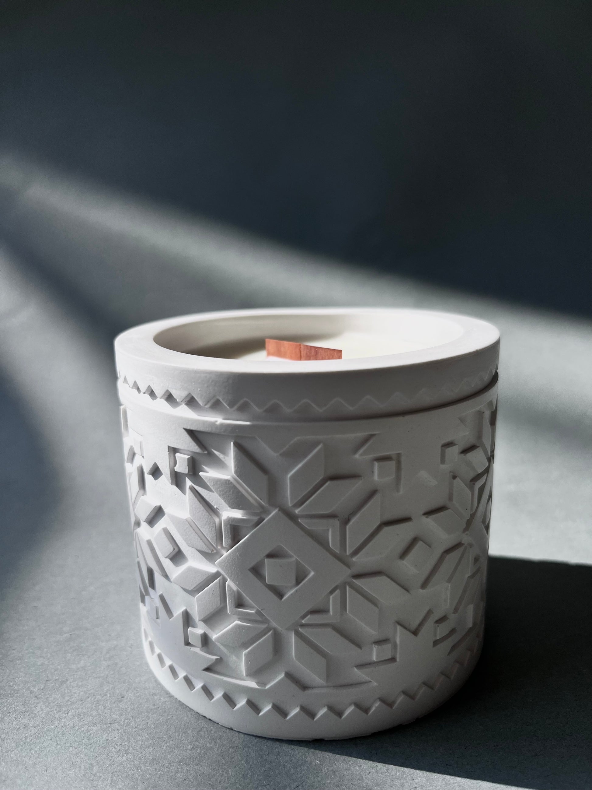 Vela artesanal exclusiva em um elegante cachepot criada com atenção especial aos detalhes