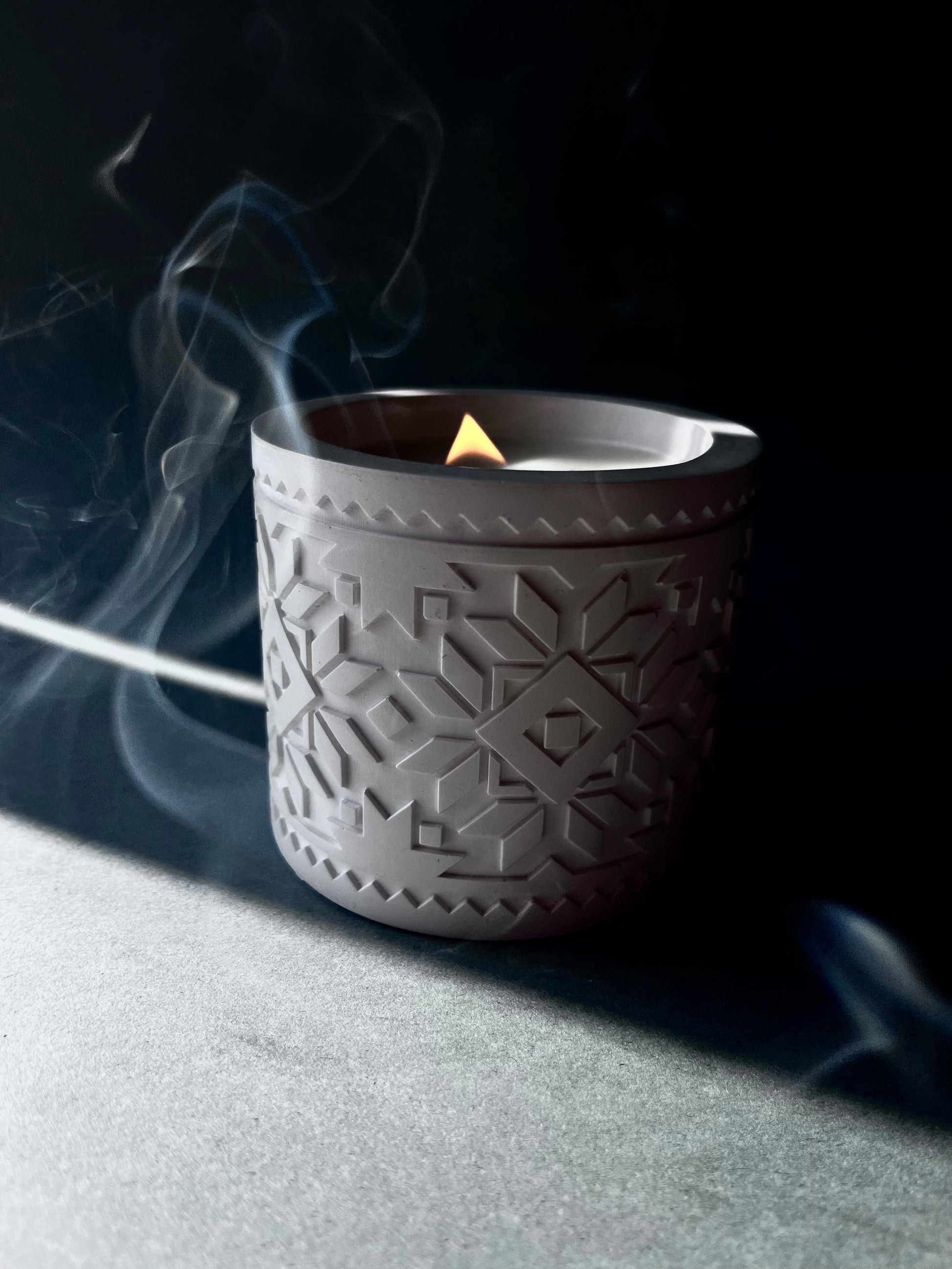 A particularidade desta vela é o padrão original moldado manualmente com grande precisão